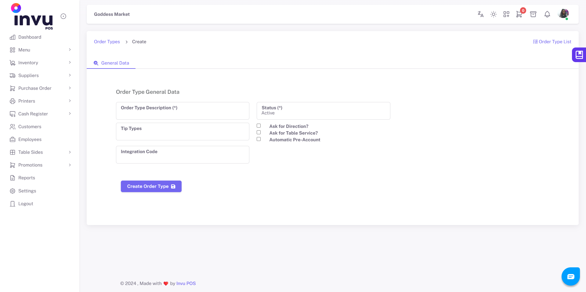 - Ask for Table Service: Indicate if using this type of order will add a table to the order.